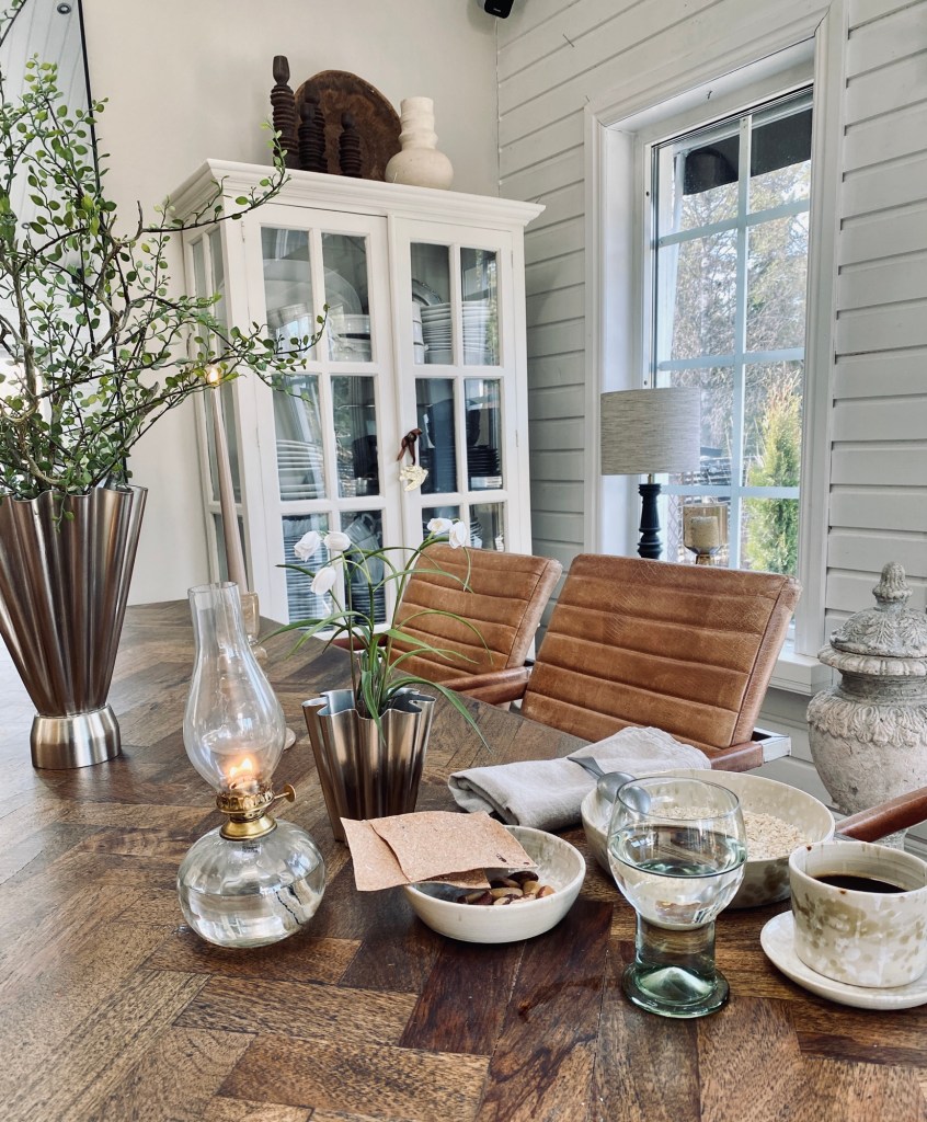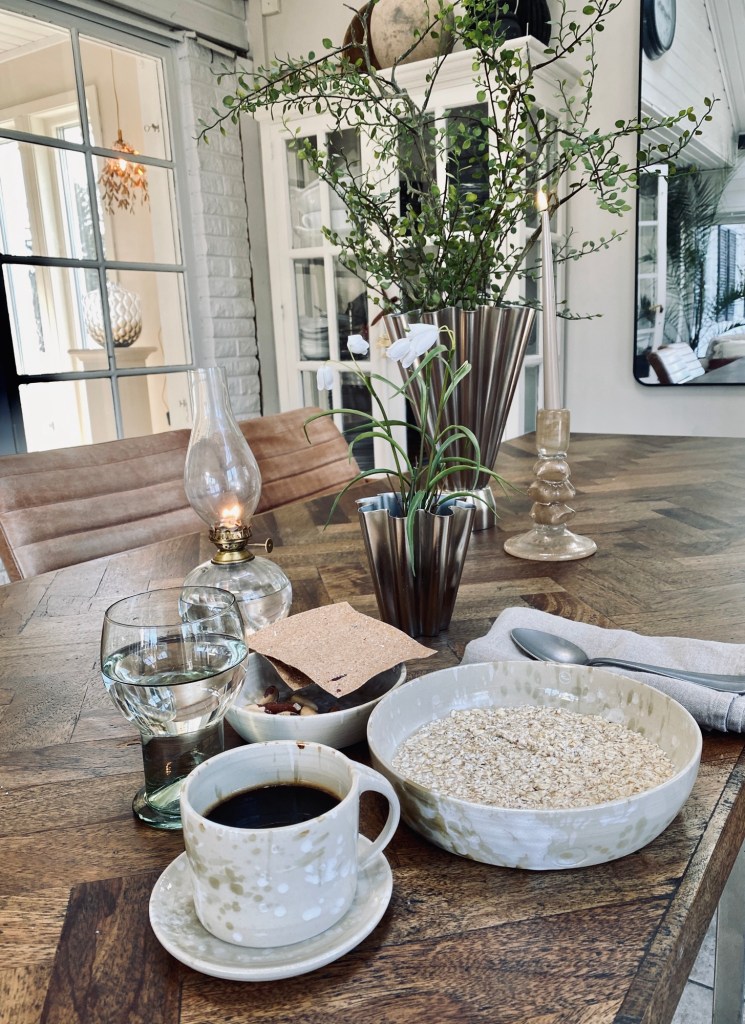 Hemma njuter jag av frukost och dagens första kaffepaus.