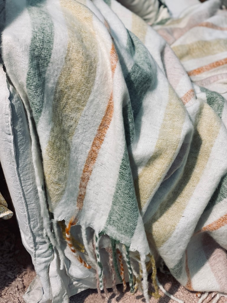 Liksom den här gosiga pläden i våriga färger.