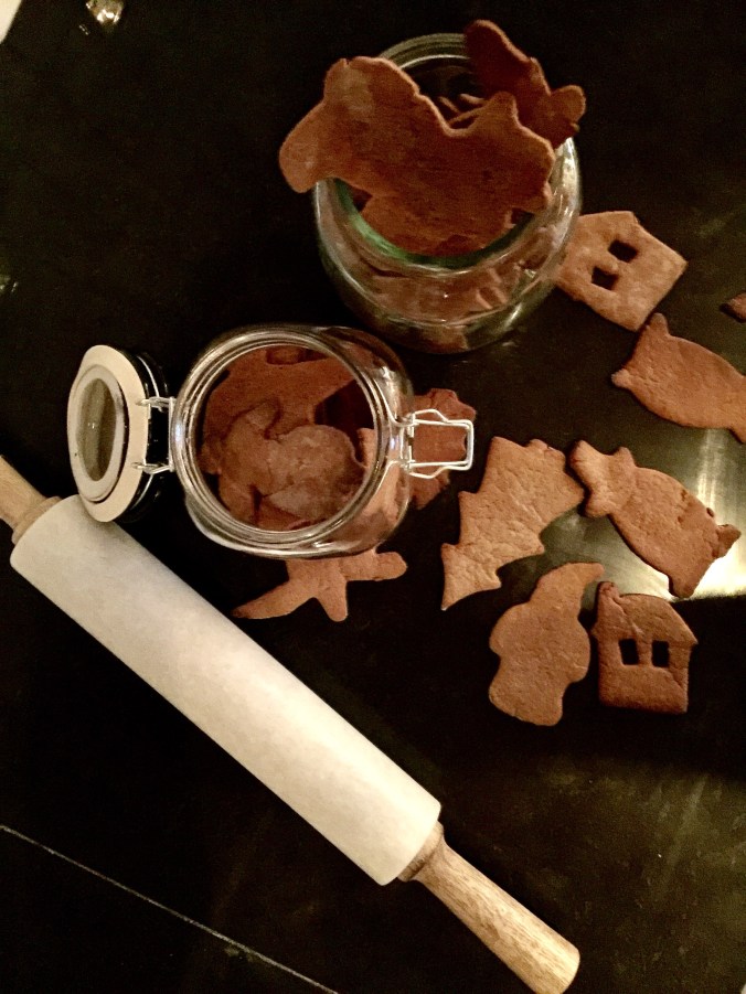 ‘Jag tycker inte ens om pepparkakor’ säger hon.Det var ju något nytt ,tänker jag och lockar med att degen iallafall är väldigt god,så en hel del åkte i munnen innan det ens hunnit blivit kavlat.Det blev några peppisar ändå ,lite knöliga stjärnor ,bockar utan ben och grisar utan knorr.