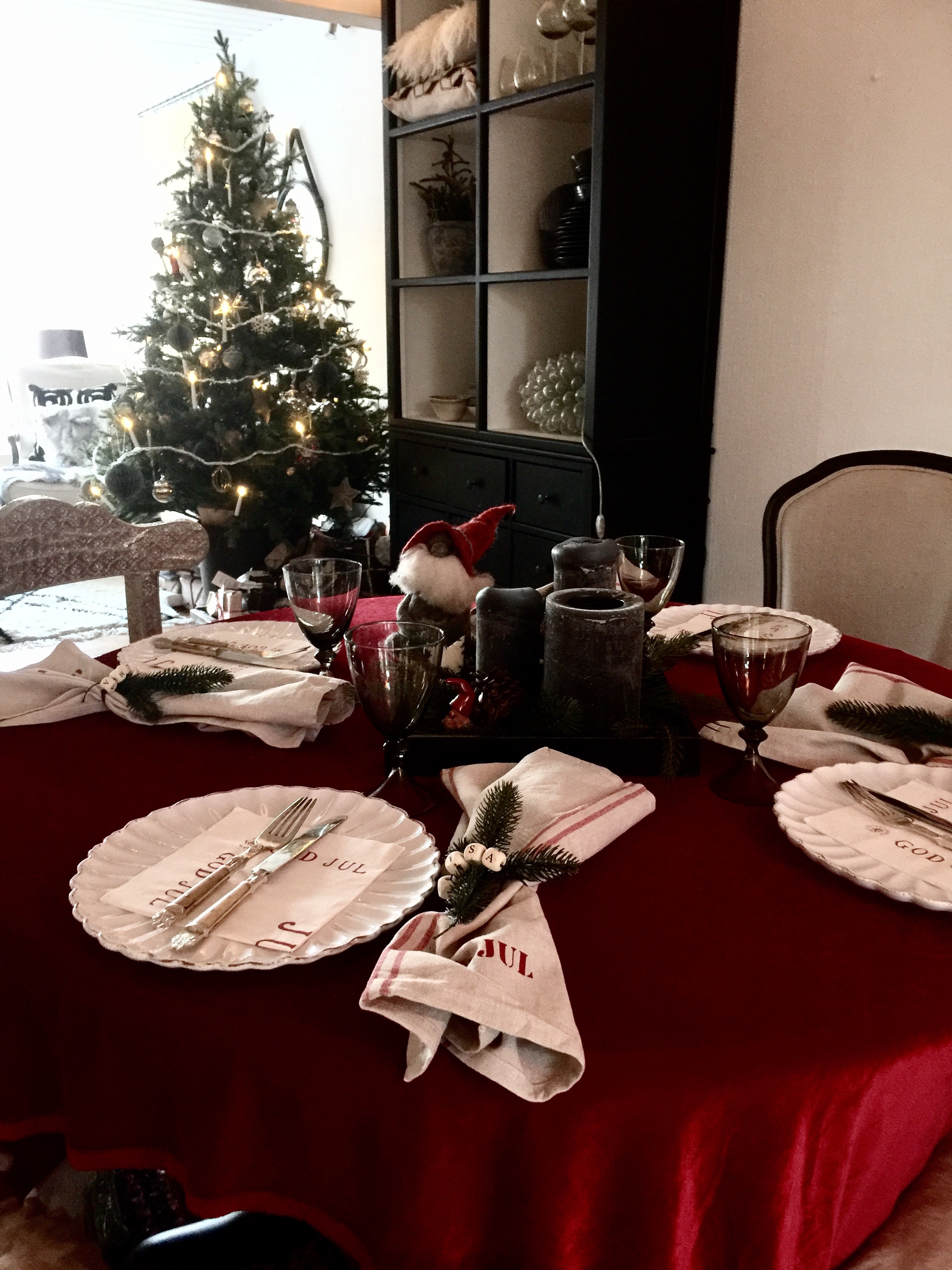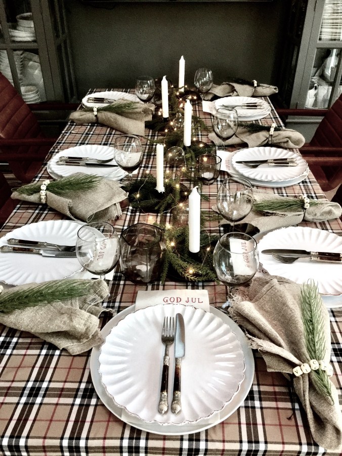 Dukningen är klar , det blev ingen vit linneduk utan Olsson & Jensens snygga duk ,som både känns ljus och lite rustik.Nu blir det långpromenad runt Holmsund och havet.
