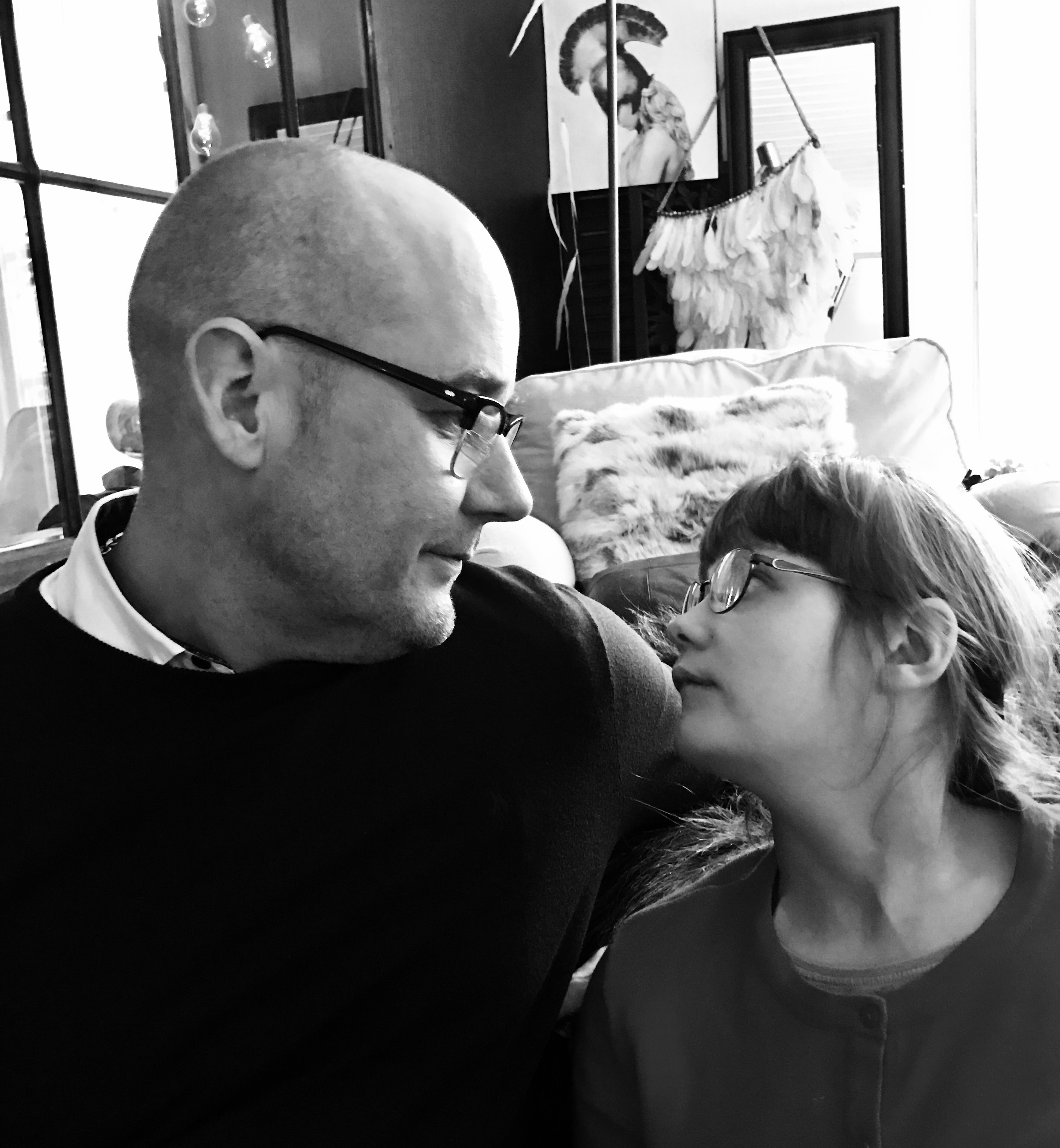 [Riktig pappa-Elsa kärlek ]. Vi lever varannan-vecka-liv med Vilma vår fina tio-åring men Elsa som blir tjugo i höst bor bara hos mej .