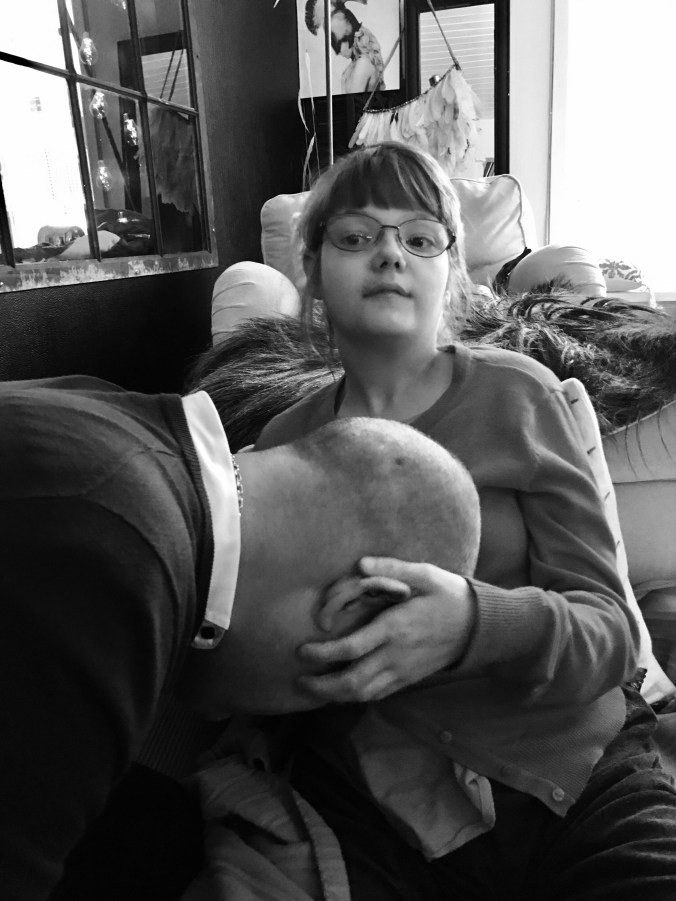 I veckan kom flickornas pappa förbi för att få lite extra kramar .