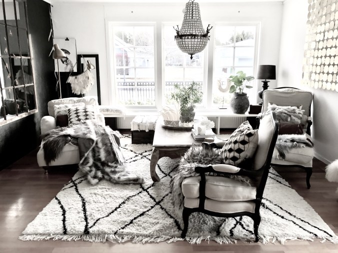 Var ute efter ett lite hårdare uttryck,blev en stor skillnad men är inte helt nöjd, någon gång kommer det att komma in en låång soffa här ,kanske i sammet ,med en enda lång dyna och två, tre rygg dynor ,lite skönt nedsutten så där ,inget stramt utan en perfekt fluffig möbel att slänga sej ner i.
