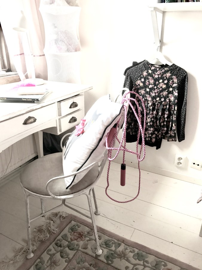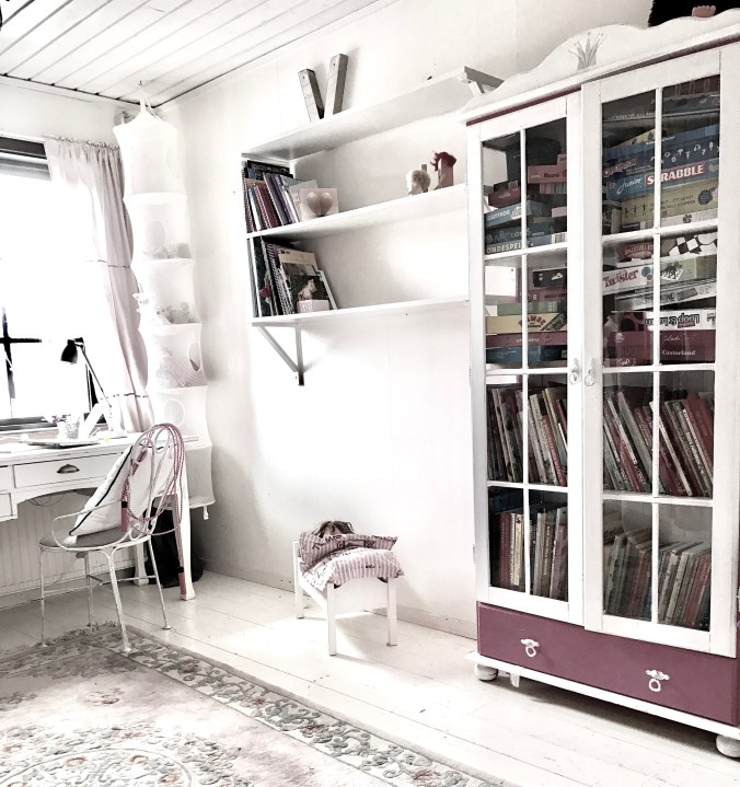 Äntligen har vi tagit tag i Vilmas rum och tusen miljarder leksaker ,(eller i alla fall tre sopsäckar ), med minikastruller,en liten spis och den gamla spjälsängen som stod som en stopp kloss mitt i rummet och som används till att natta både kompisar och dockor,sista tiden blev den enbart en magnet för allt som låg runt golvet, propp full med både det ena och det andra .