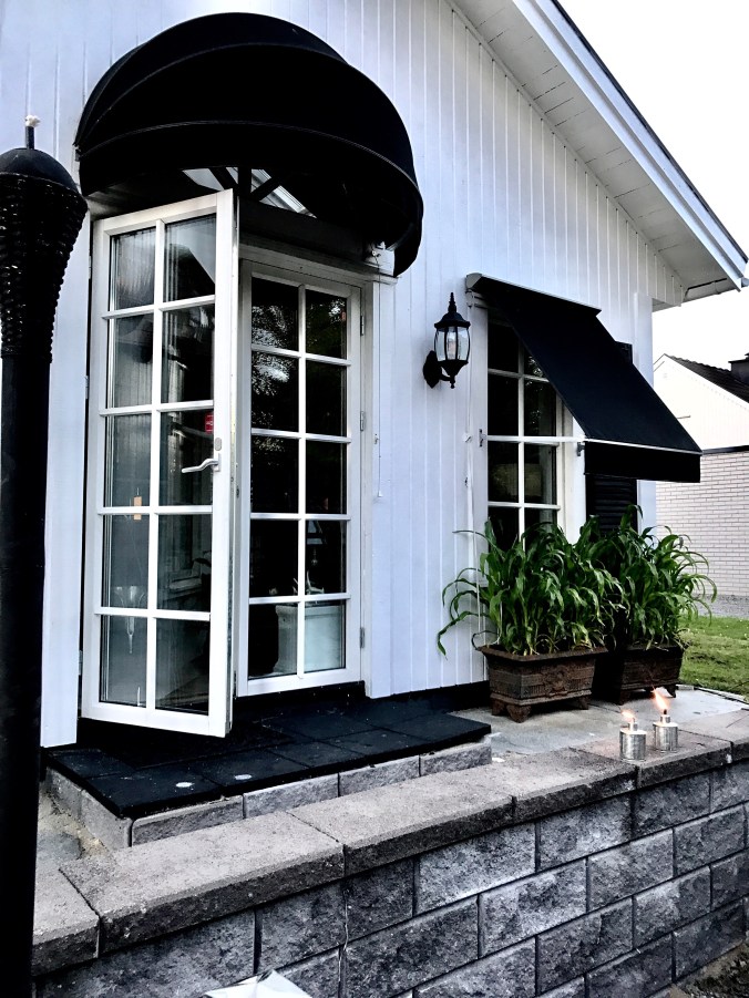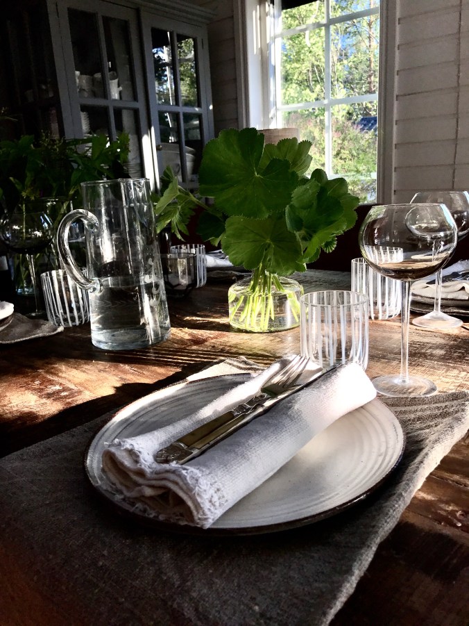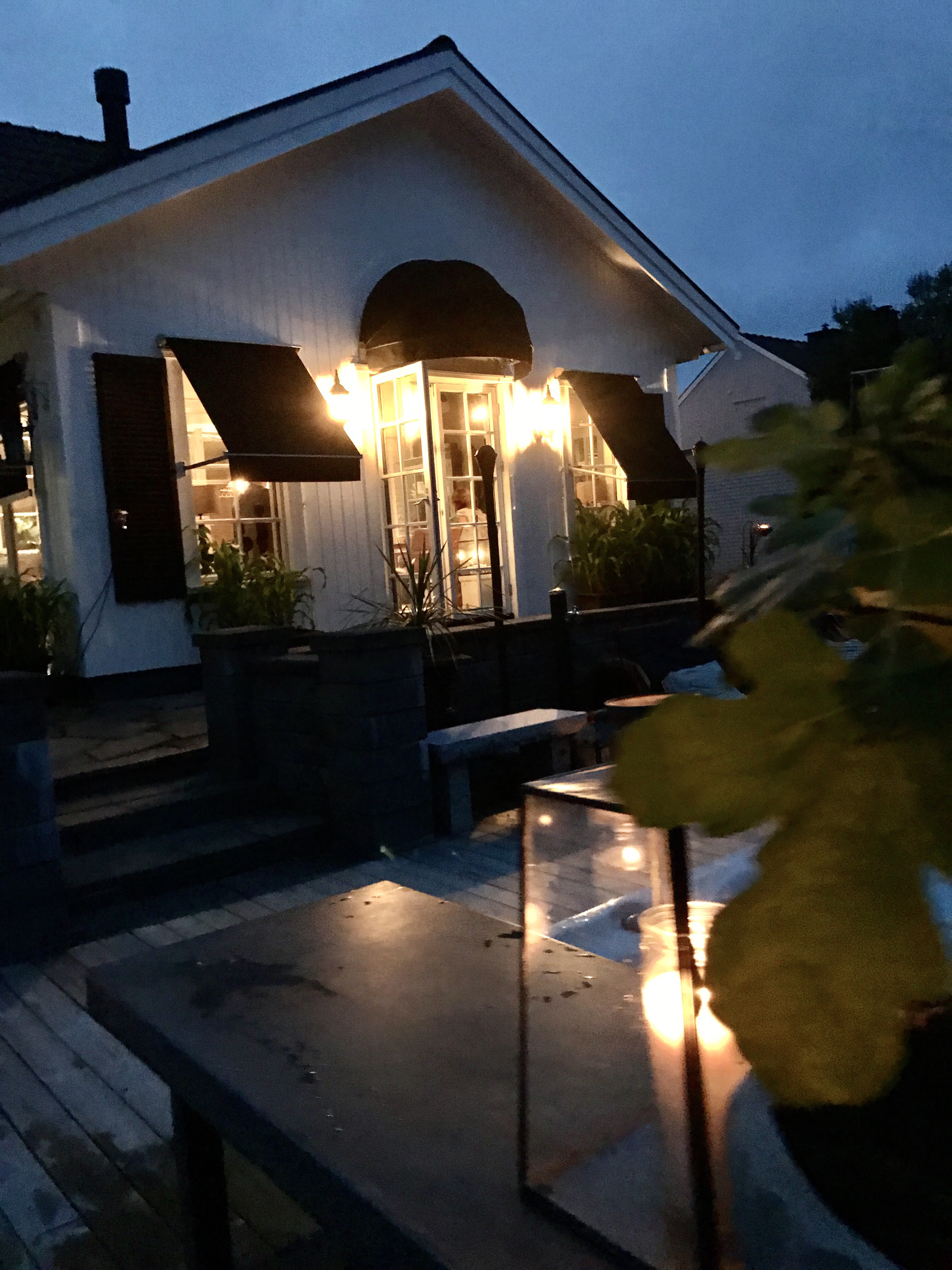 Efter några riktigt härliga timmar begav vi oss hem till mej, för en stund i loungen, startade grillen och dukade under den gamla apeln ,blev riktigt gott, fläskfile , fatostkräm, Halloumi, majskolvar och Bearnaise.