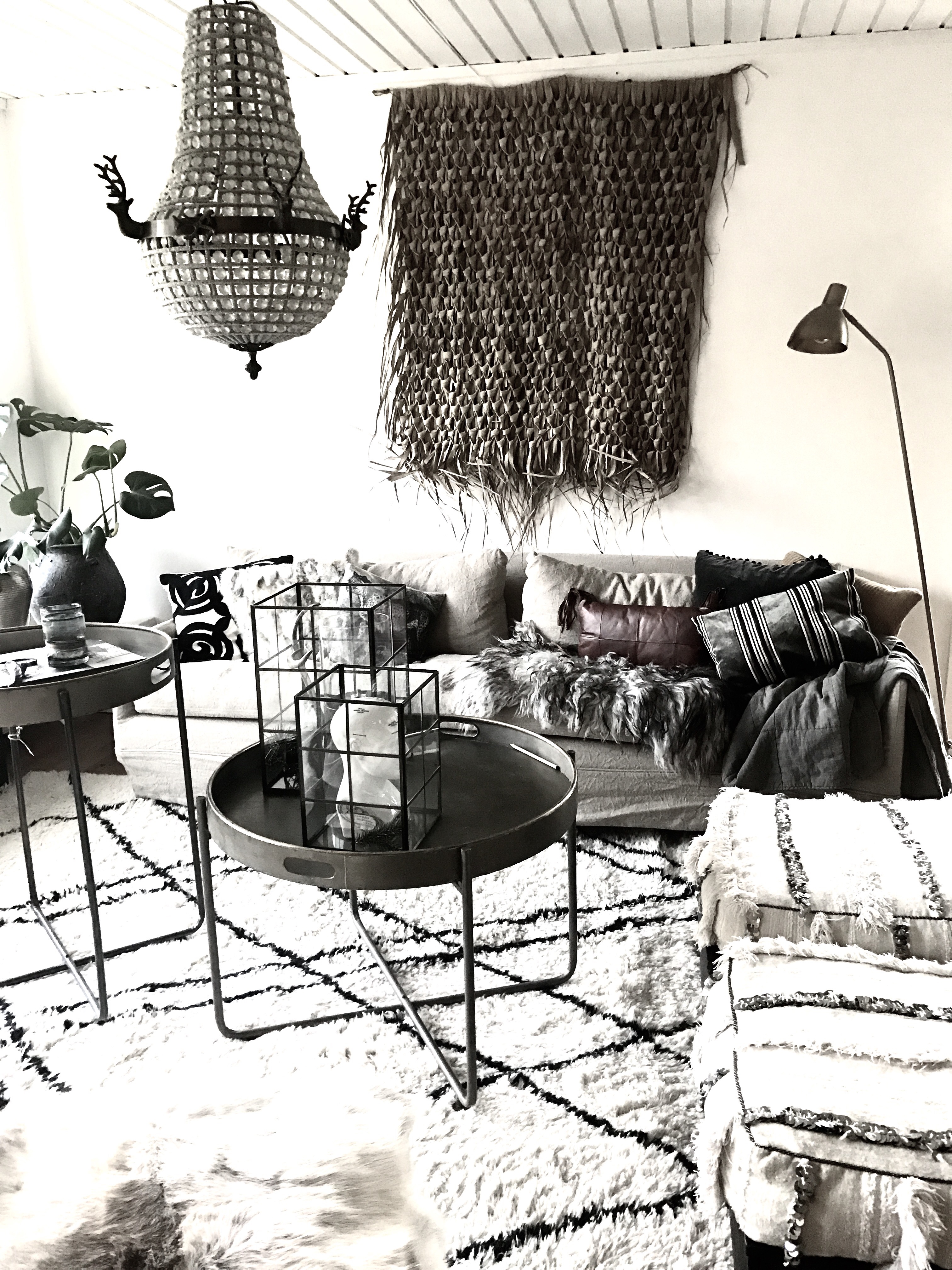 Jag bytte den grå pläden mot den mörkare lurviga som tidigare låg på schäslongerna i utbyggnaden bara det blev faktiskt fint med lite mer kontrast och struktur kanske kommer några färggladare sammetskuddar att bli fint.