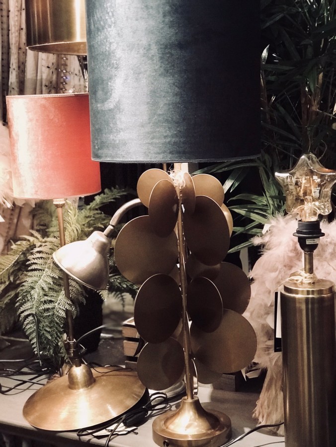 och mängder av lampskärmar och lampor , älskar sammetslampskärmar, särskilt de cylindriska .