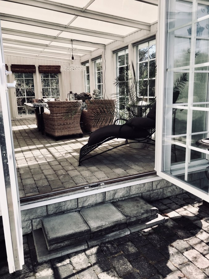 Ja just det, när jag och mamma kom hem efter den inte så lugna men goda middagen skruvade vi ihop den här fina bänken eller hyllan på hjul till mammas uterum.