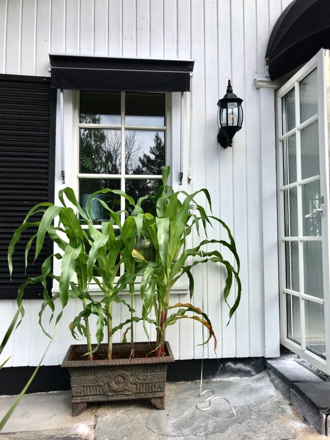 [Kanariepalmerna får stå ute så länge det går innan de får komma in och vara krukväxter ]