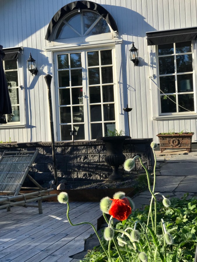 På väg upp från Ljumviken gick jag,mamma och Anna förbi Åsa-vid-havet och önskade glad midsommar,precis lagom till att solen kom fram .