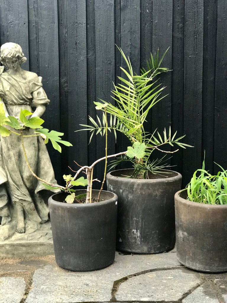 Börjar alltid ställa ut de övervintrade växterna alldeles för tidigt, vilket gör att det blir ett kånkande in och ut i garaget några extra svängar innan de kan lämnas ute för ett skönt sommarlov i det fria.