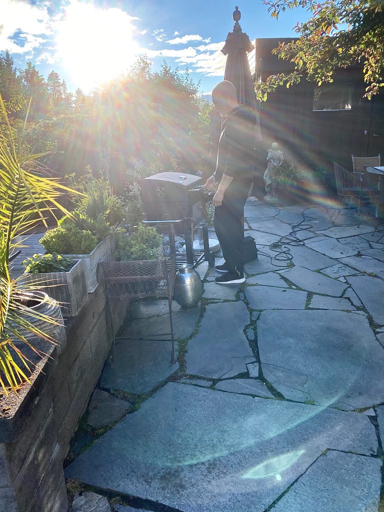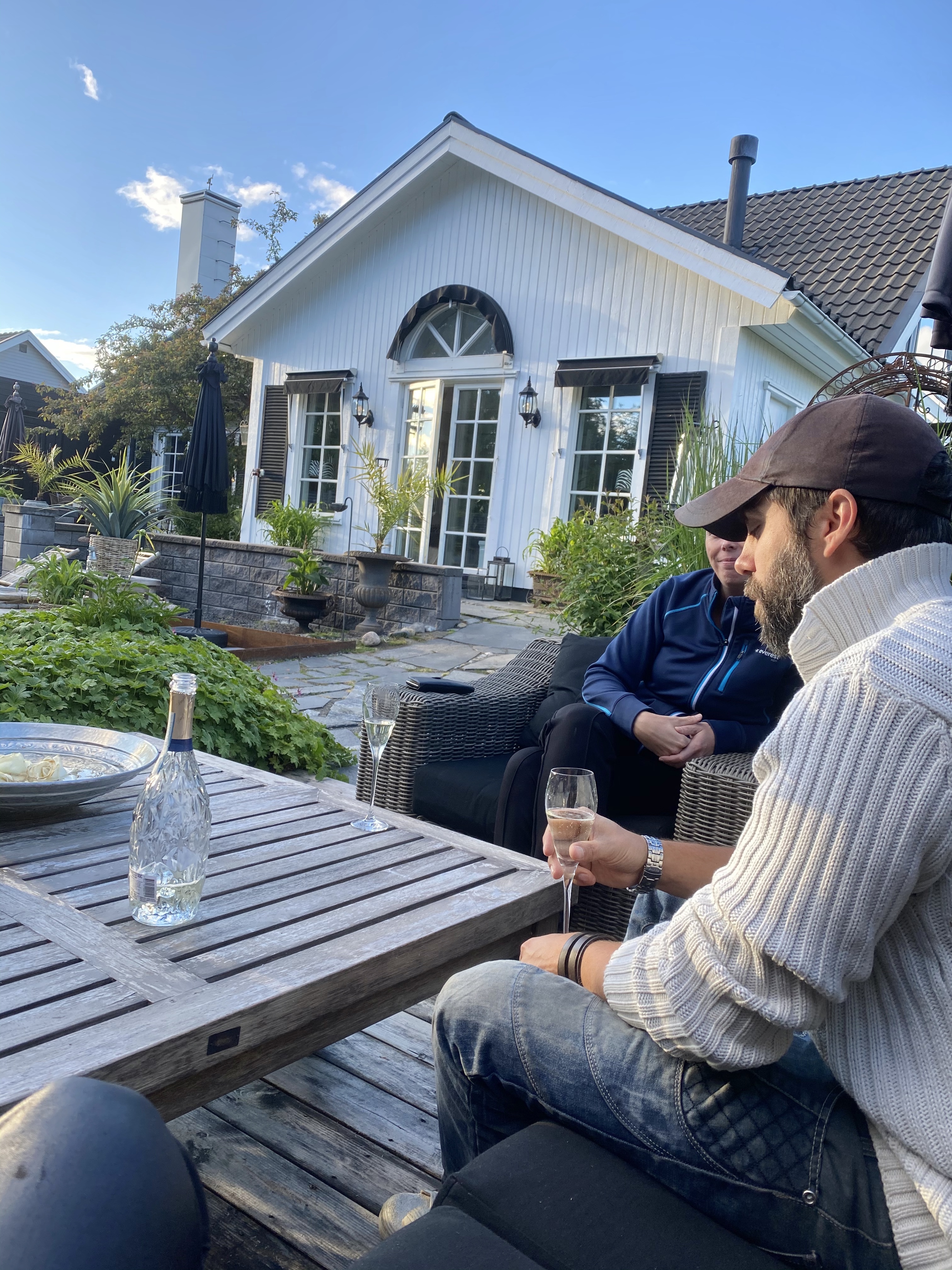 I dag har vi suttit ute i solen efter en sen frukost och nu har Daniel och hans killar åkt hem till stan.