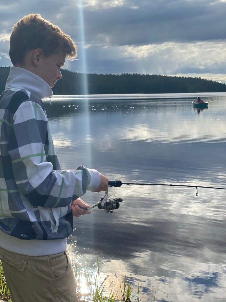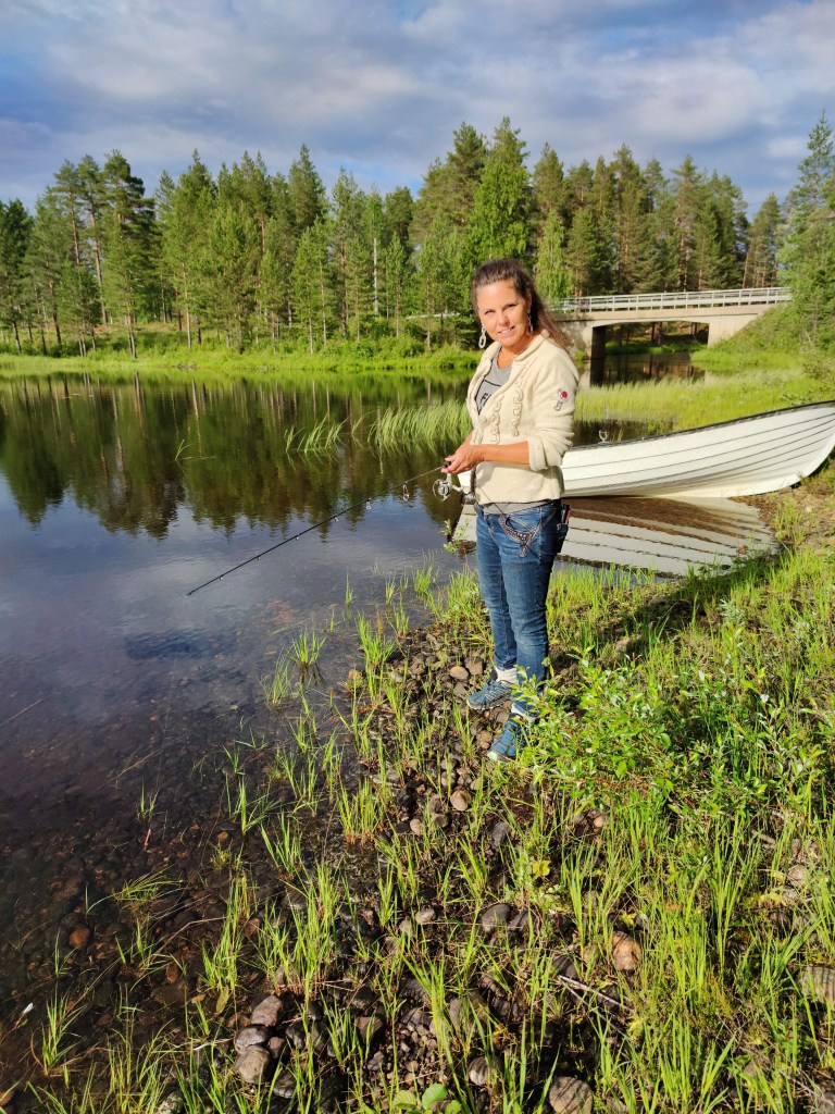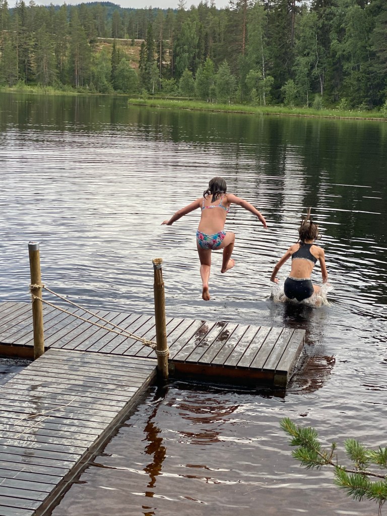 Fiske i spegelblankt vatten till sent på kvällen och självklart så har tjejerna badat mint tio gånger om dagen.