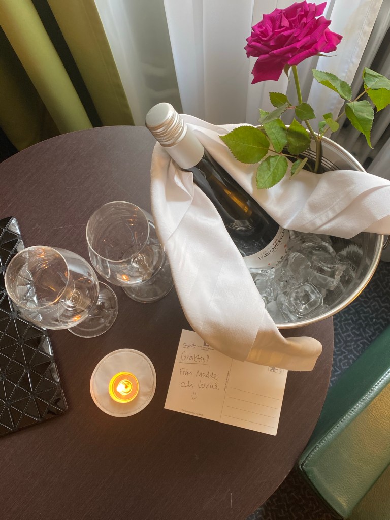 Och passade på att njuta lite extra med Meyas föräldrar och ett glas bubbel i loungen .