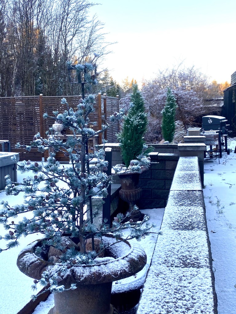 Hej på er kära vänner. När jag tittade ut genom fönstret i morse blev jag så glad . Det har snöat i natt.