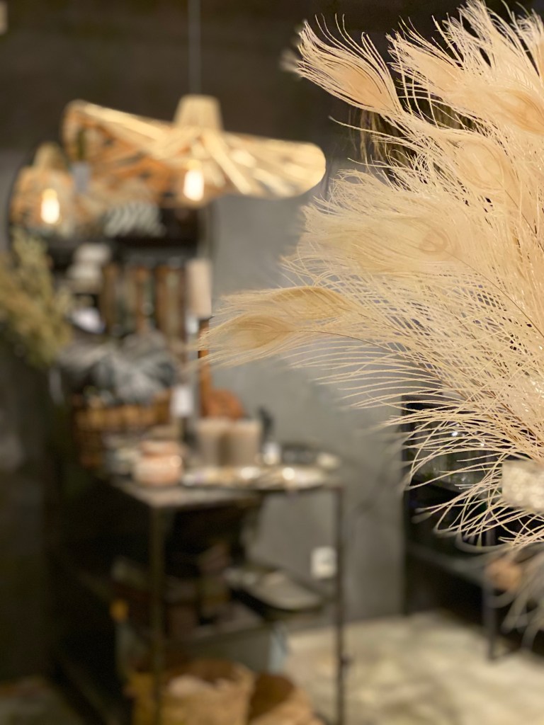 Ljusa inredningsdetaljer med en naturlig känsla i butiken .