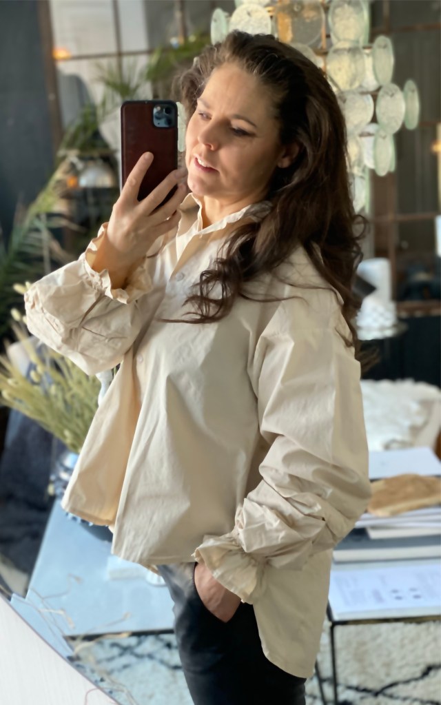 Blus med fina detaljer på ärmarna och som är lite längre bak [599kr]