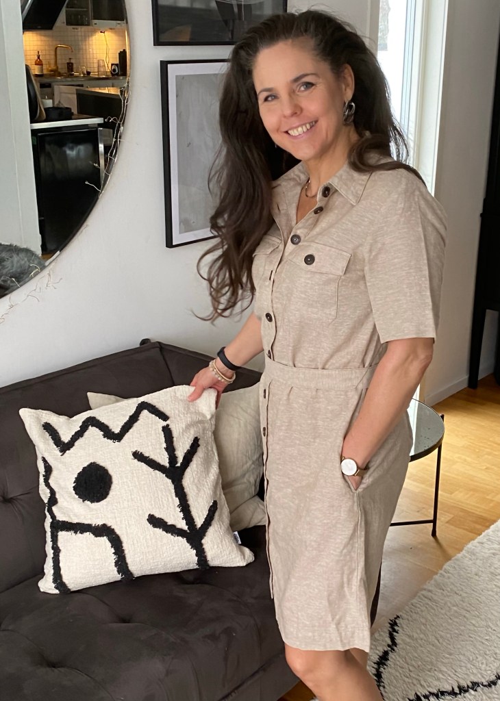 Det blir klänning för mej idag. Den här med fickor som är delvis av linne .