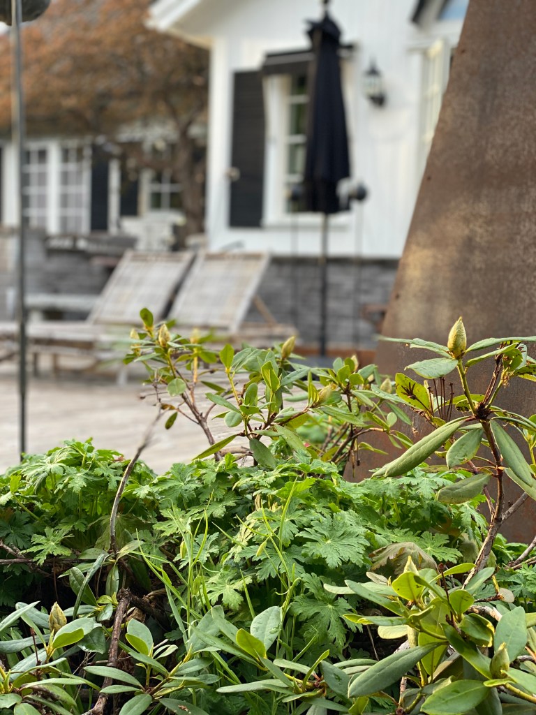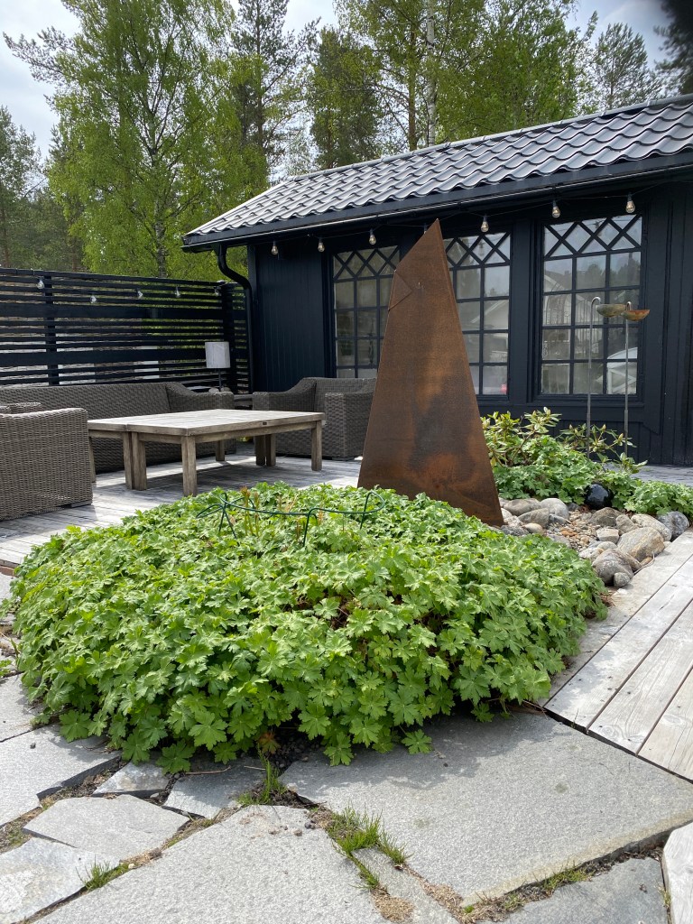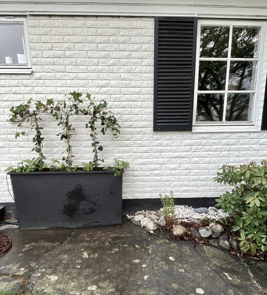 [Murgröna på höjden och Skuggröna som marktäckare vid entrén]