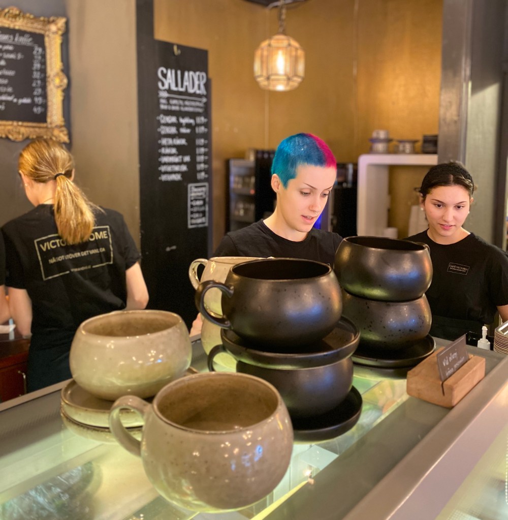 I vårt mysiga Cafe Victoria har vår härliga personal öst på med godsaker hela morgonen. Självklart går allt vi erbjuder även att ta med sej om man önskar.