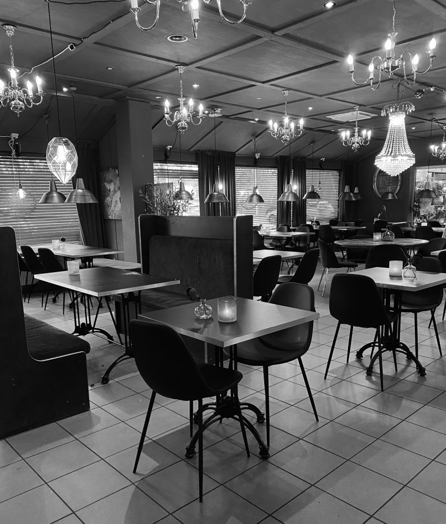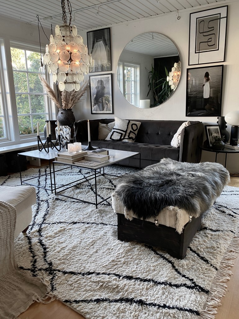 I färgerna dovt svart, ljust grått, fräscht vita och djupt röda.