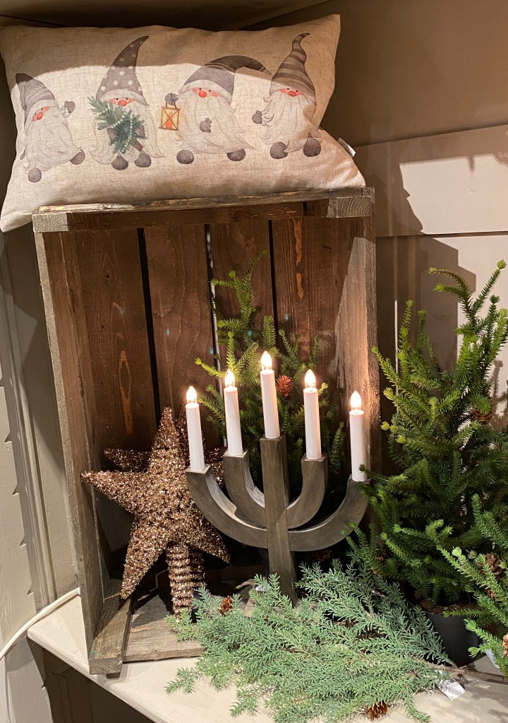 Älskar att äntligen börja ta fram årets fina advent och jul i butiken. Många undrar när allt kommit in och svaret blir: Brukar vara när det första tagit slut. Det rullar in nyheter varje dag i butiken så vi är som små tomtenissar som hela tiden packar upp nytt. Vi inspireras massor av allt nytt och gör ständigt nya miljöer.