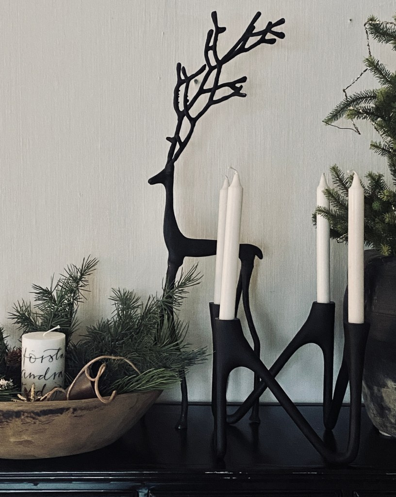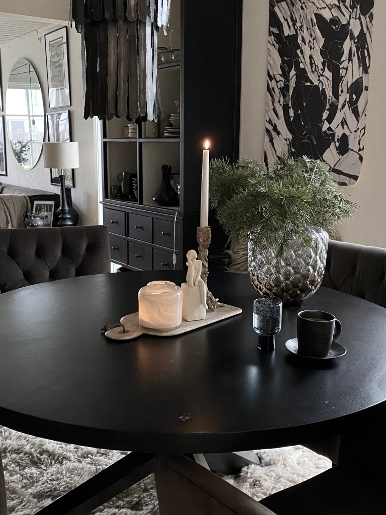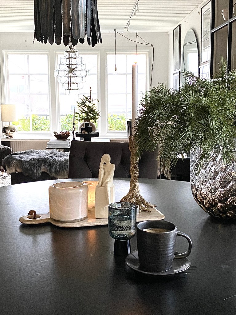 Adventsljusstaken med levande ljus blir nog den nya svarta maffiga moderna. Den har stått framme sedan tidigt i höstas men nu känner jag att den blir fin som adventsljusstake.Jag brukar tända två ljusstakar med levande ljus . Den andra får gärna vara med blockljus känner jag. Dom ska jag ställas på en bricka eller kanske den nya skärbrädan av beige marmor.
