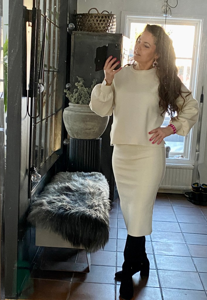 I dag blir det den ljusa gosiga kjolen och toppen. Älskar det ljusa så här under vårvintern. Känns extra lyxigt.