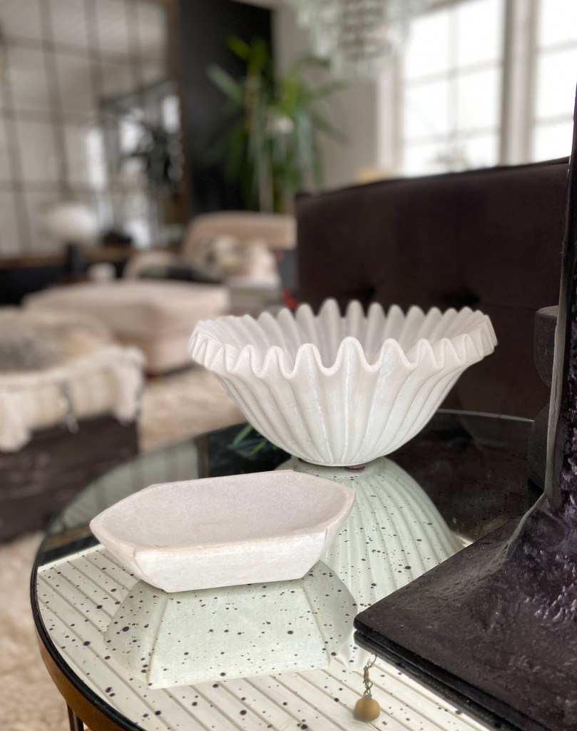 Har ni sett den här grymt snygga veckade skålen av marmor. Det här är en riktigt fin inredningsdetalj. Finns i butiken nu.