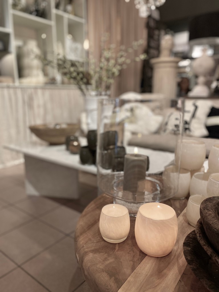 En annan inredningsnyhet är de här ljuslyktorna av glas. De är stadiga de här ljuslyktorna med en rejäl botten. Så fina i tre färger och i två storlekar.