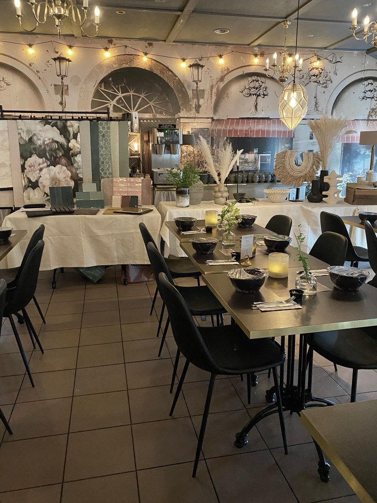 Äntligen var det dags att förbereda inför me det sista inför vår kundkväll: ”Med inredning i fokus”. Hela caféet behövde möbleras om,och dukas upp med Caesarsallader .