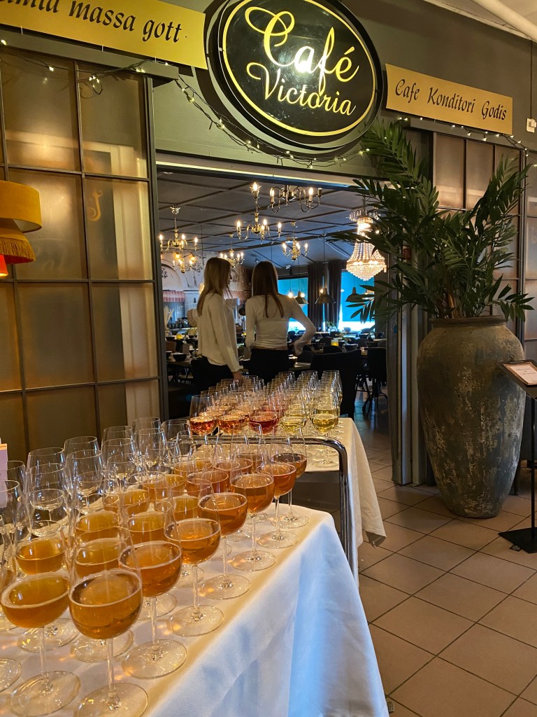 Helt fantastiskt vad det rullade på med allt. Det var fullsatt och alla sjuttiofyra biljetter var uthämtade. Vi började med att hälsa välkommen med ett glas gott.