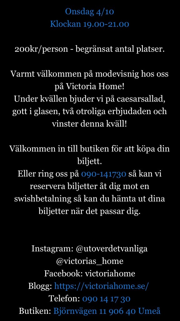 Inbjudan till modevisningen släpptes redan förra veckan till Vickans V.IP vår kundklubb . Är man medlem så får du förtur till kundkvällar och andra happenings i butiken .