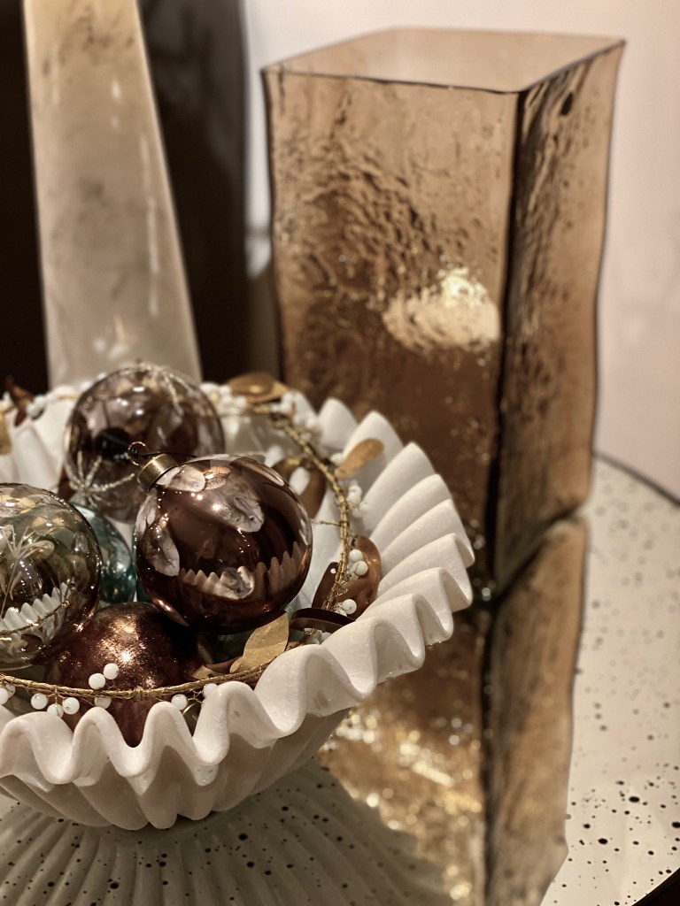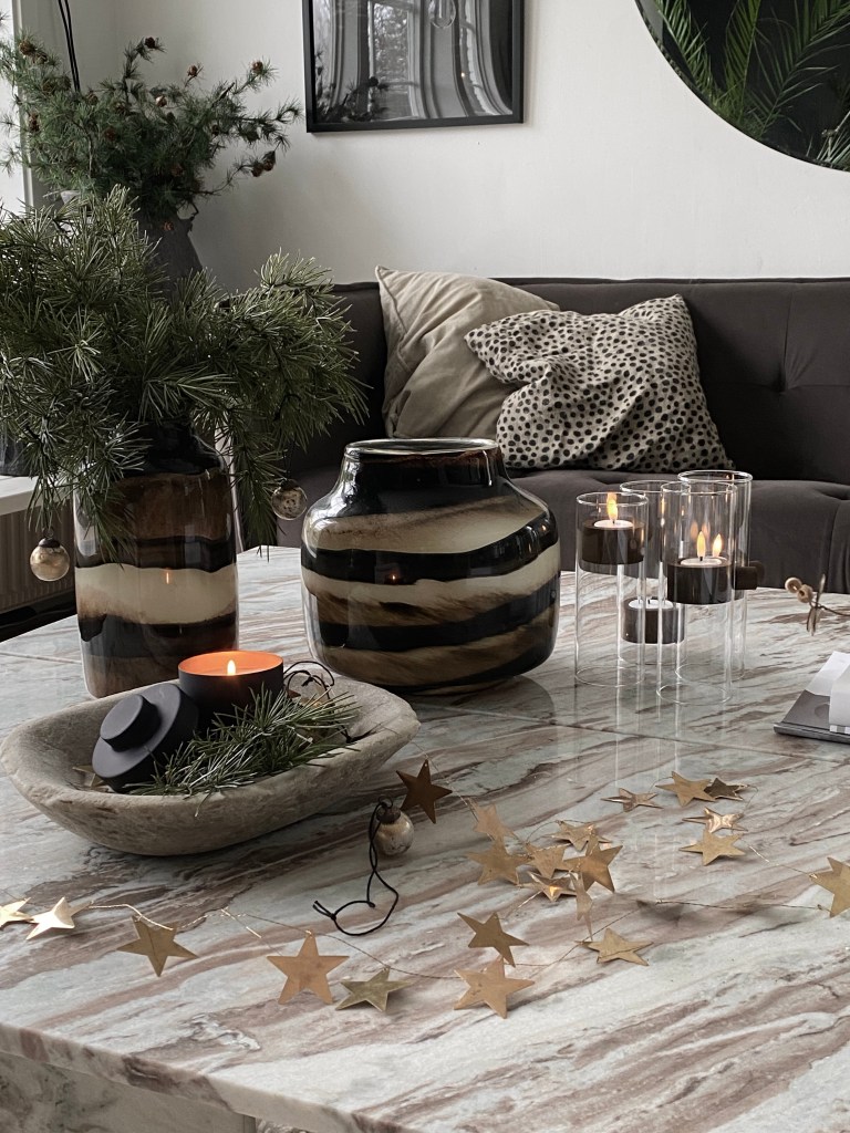 Vi har bullat upp med utvalda handplockade adventsprydnader och ljusstakar .