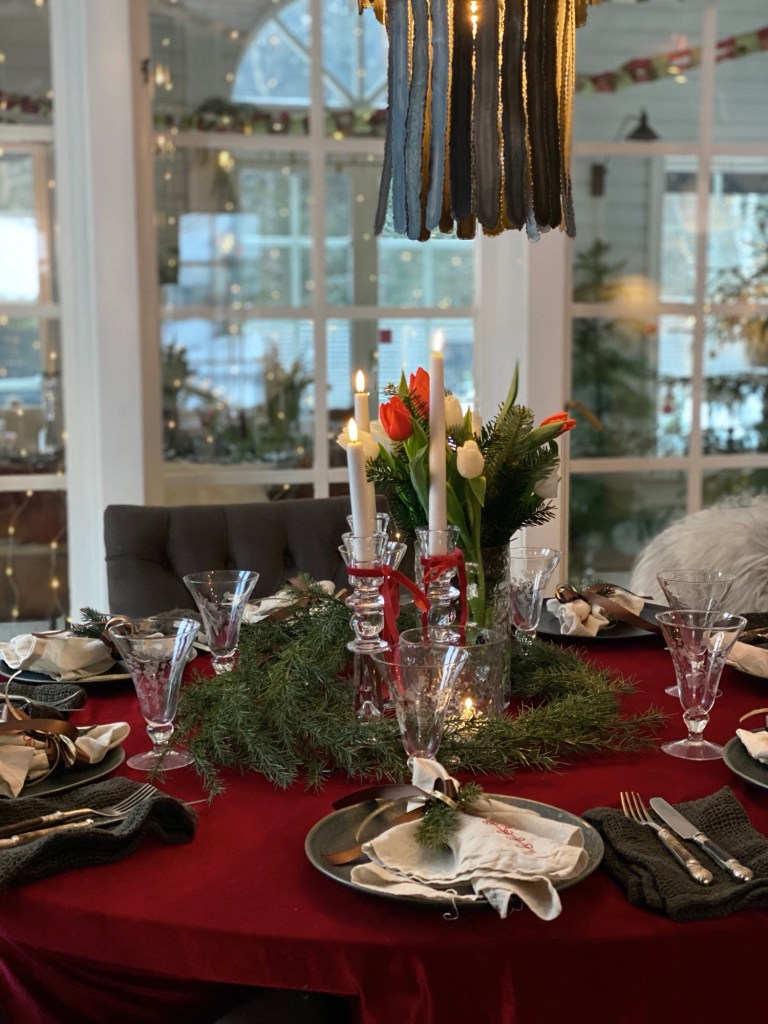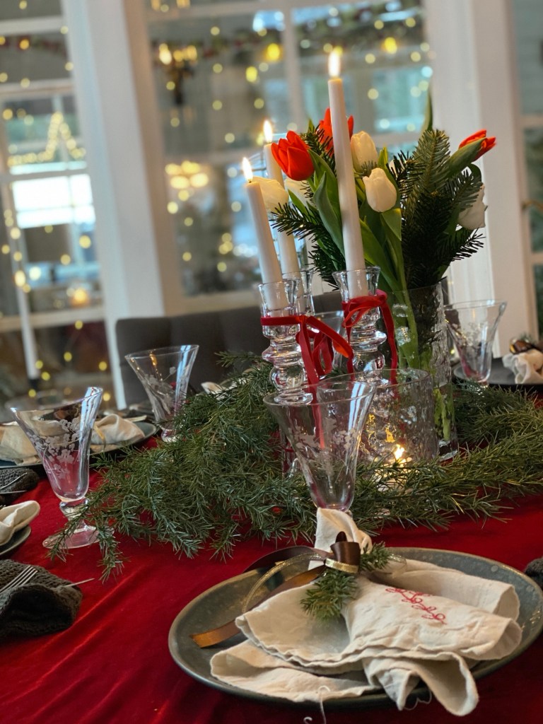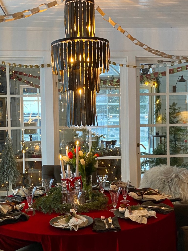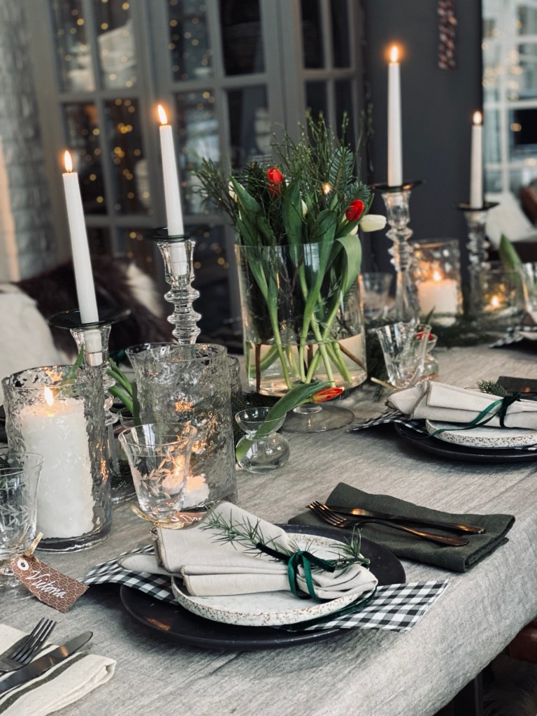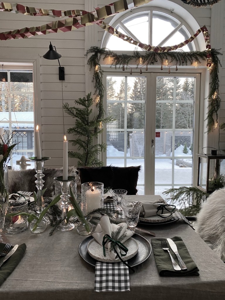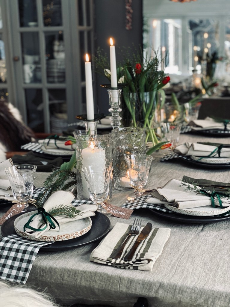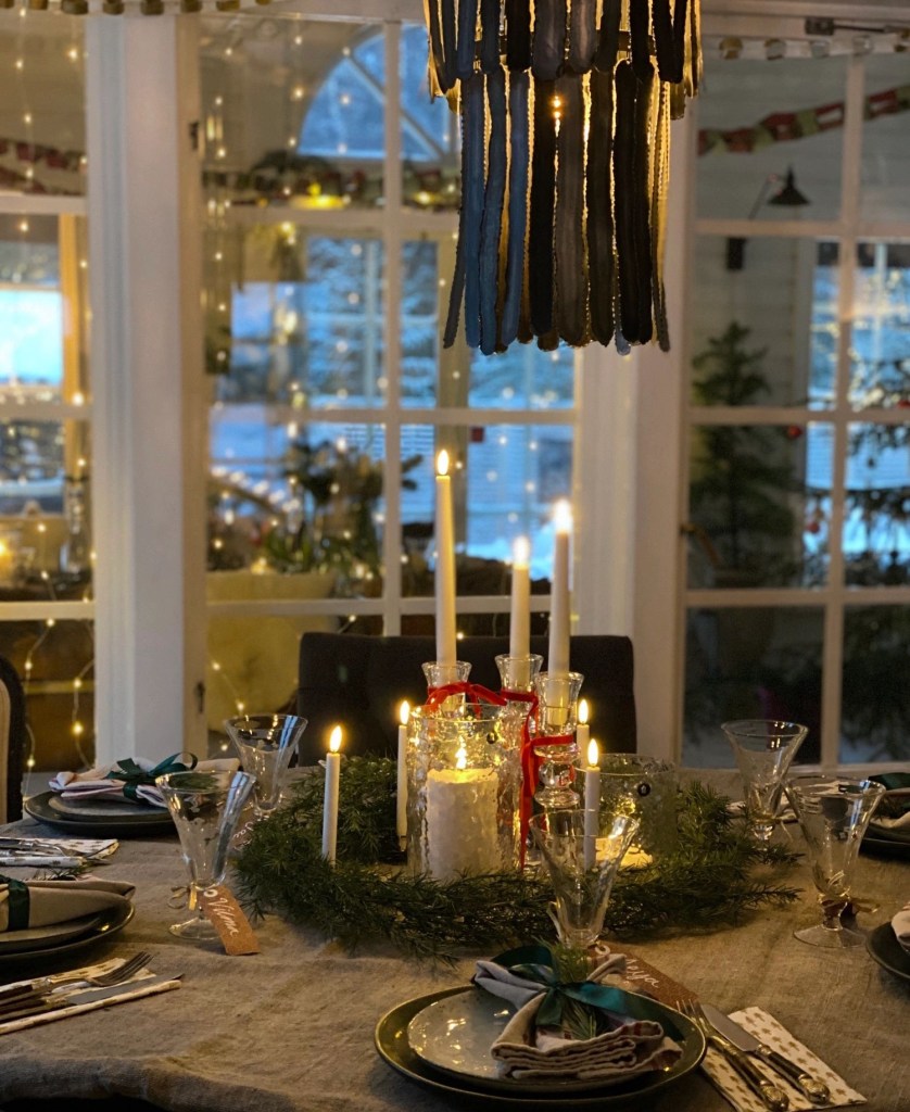 Dukningstipset från mej är: släng på en rejäl duk och maxa mitten delen på bordet med granris och eller gröna girlanger.