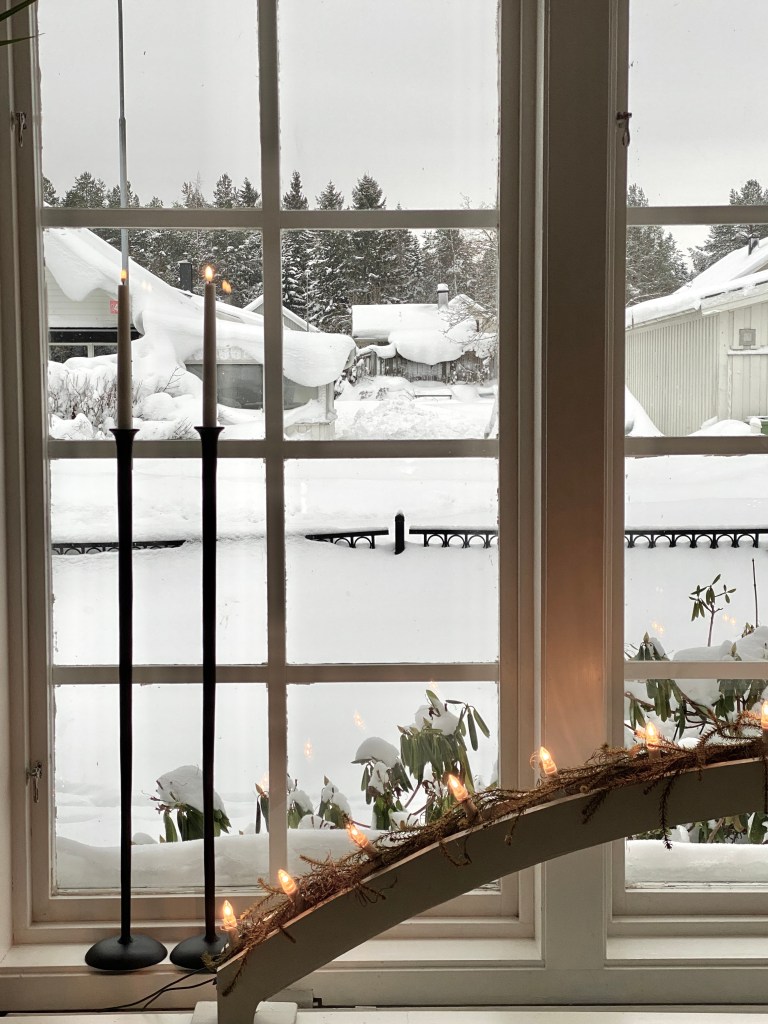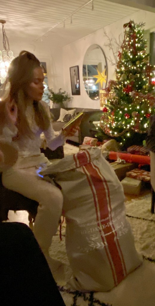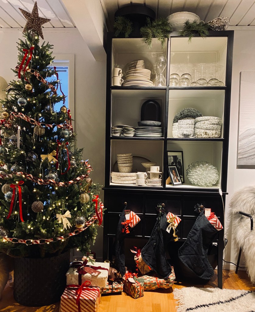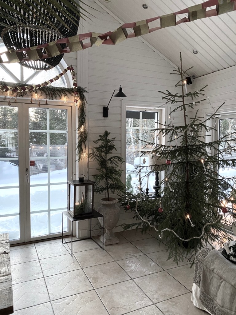 Det är dan före dan. Bara att säga de orden är lite magiskt ”dan före dan”. Den ( gigantiska taniga)levande julgranen är så himla fin och ger stämning till precis hela matrummet med sin doft och det varma skenet från de små julgransljusen..