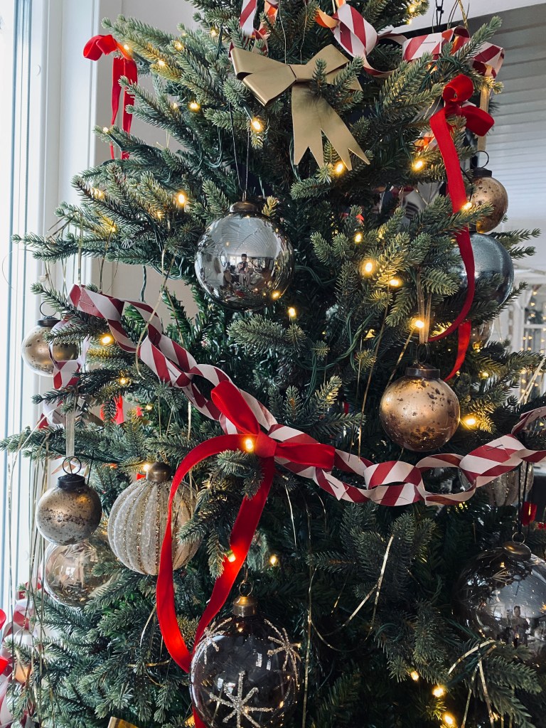 Jag lägger ofta till julkulor, girlanger och andra favoriter i julgranen.