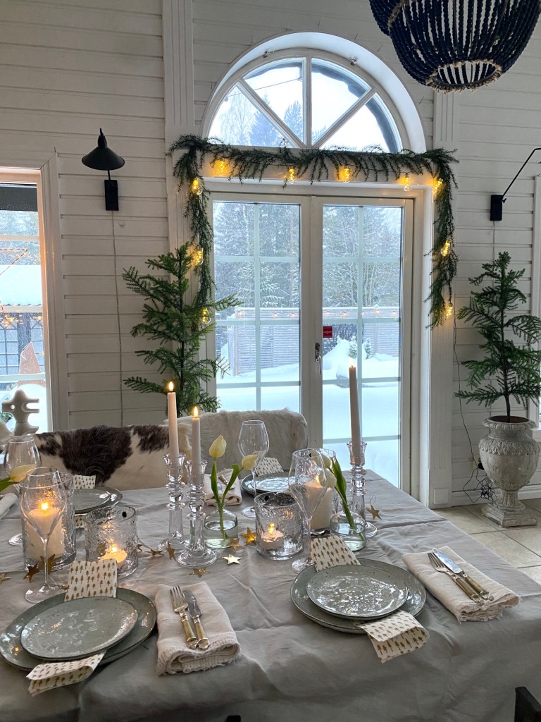 Bordet är färdigdukat inför i morgon då det äntligen är julafton .