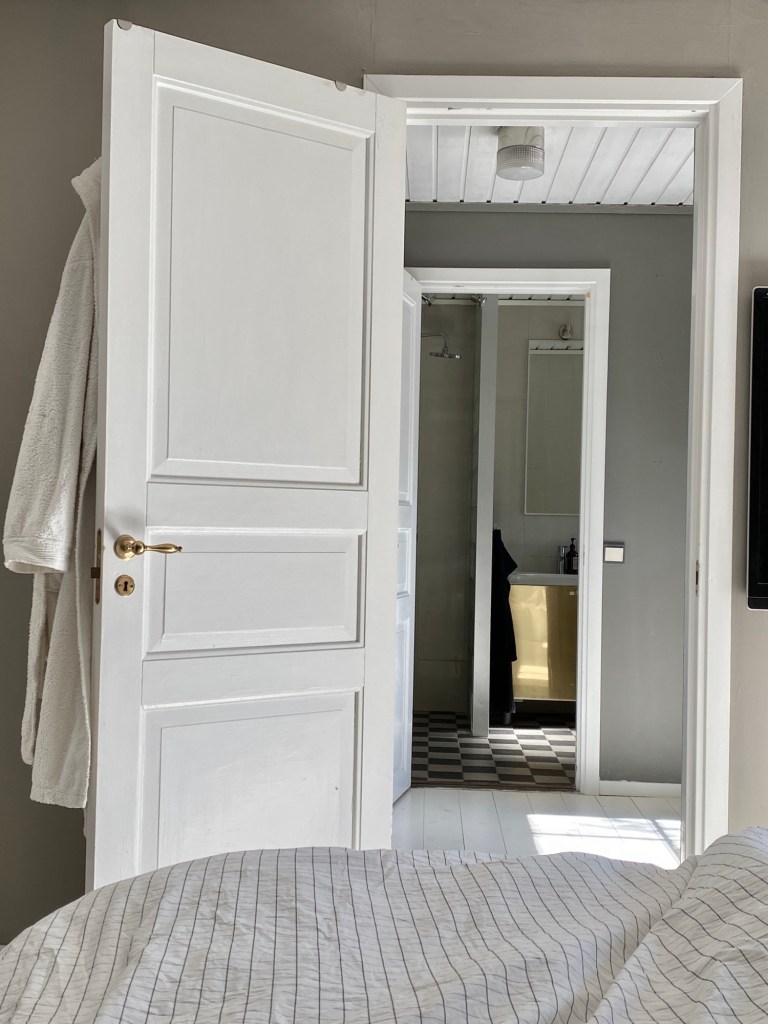 Till exempel det här med att kliva upp och göra sej klar på olika tider utan störa varandra. Sovrummet ligger i fil med en liten walk in closet och sedan badrummet.