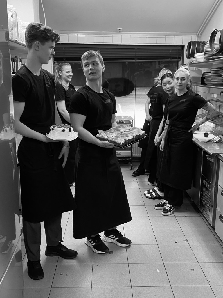 Jag, Vilma och Meya hjälper kunder med inredning , presenter och mode tills stängning.