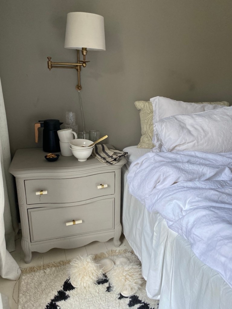 De beiga sammetsbanden som jag gjort rosetter av runt ljusstakarna blev fina till de nya beiga ledljusen.