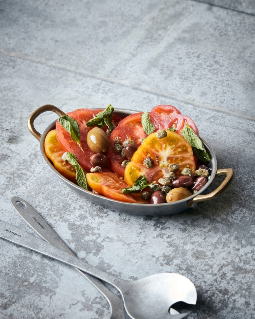 Likaså parasoller, solsängar och sidebord . I urnorna står nu några Tujor.