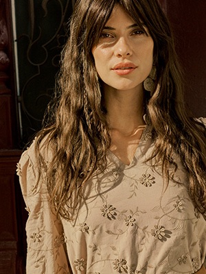 Även dukar med volang i en naturvit nyans t eller snarare snäckskalsmönstard med sina små små prickar.
