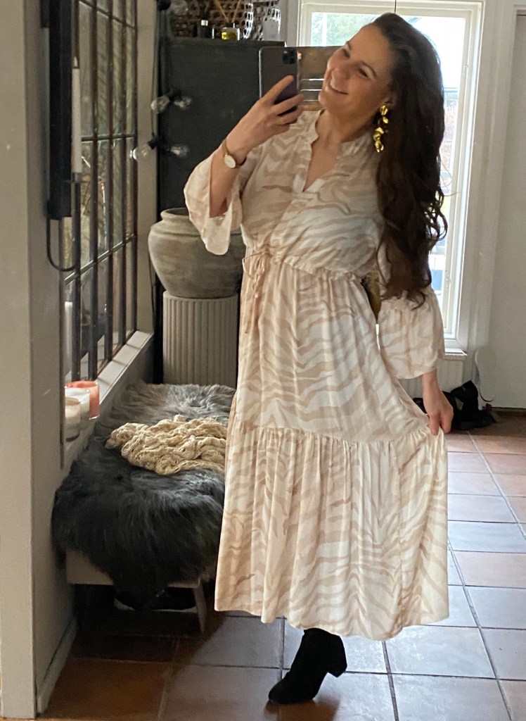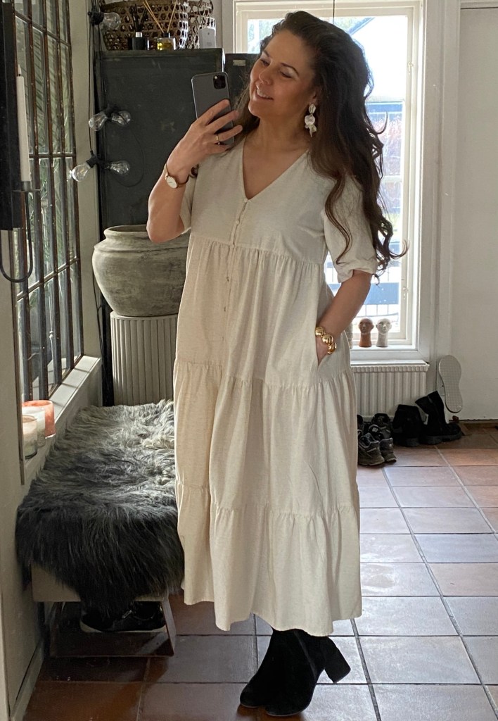 Det är alldeles i slutet på april och då jag brukar stå och stampa och vänta värmen. Så även i år men en ljus klänning hjälper . Gillar den här modellen . Finns även i rött. Superfint med rött på sommaren.