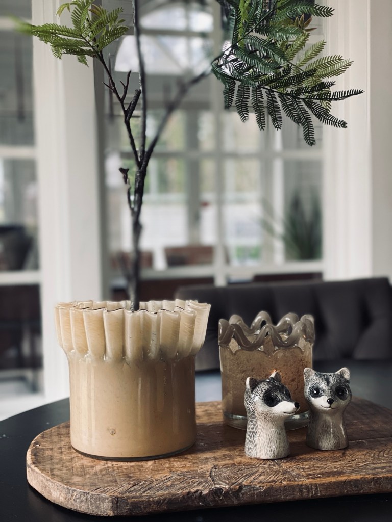 Jag älskar förändring . De där små, enkla som att möblera om på matbordet. Den nya krukan av glas och de små salt och pepparströarna som förställer ett par tvättbjörnar. Ser nu att det är en hon och en han faktiskt.