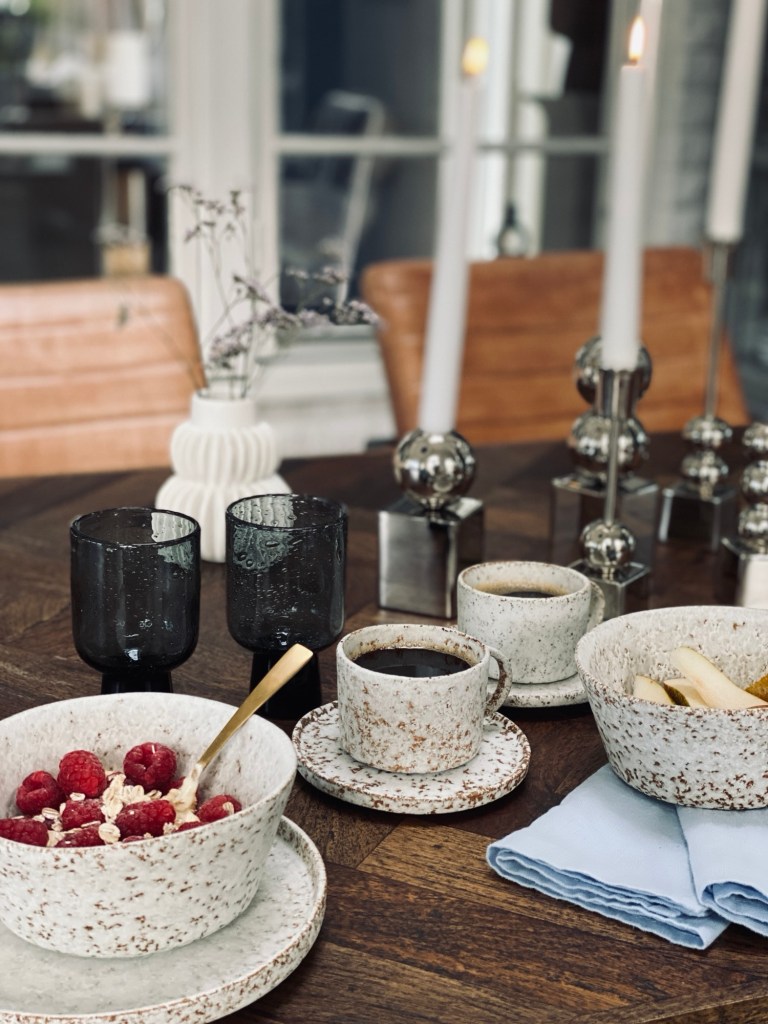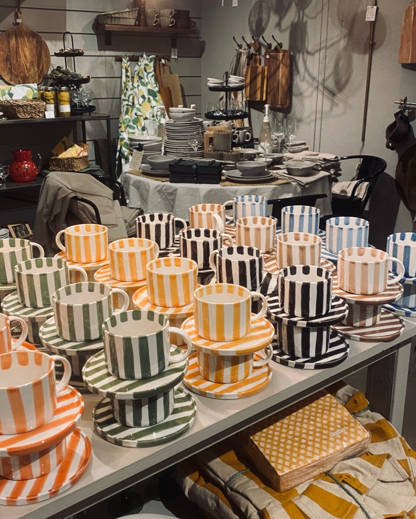 I vårt kök har vi precis fått in alla färger på de randiga magiska kopparna med fat.