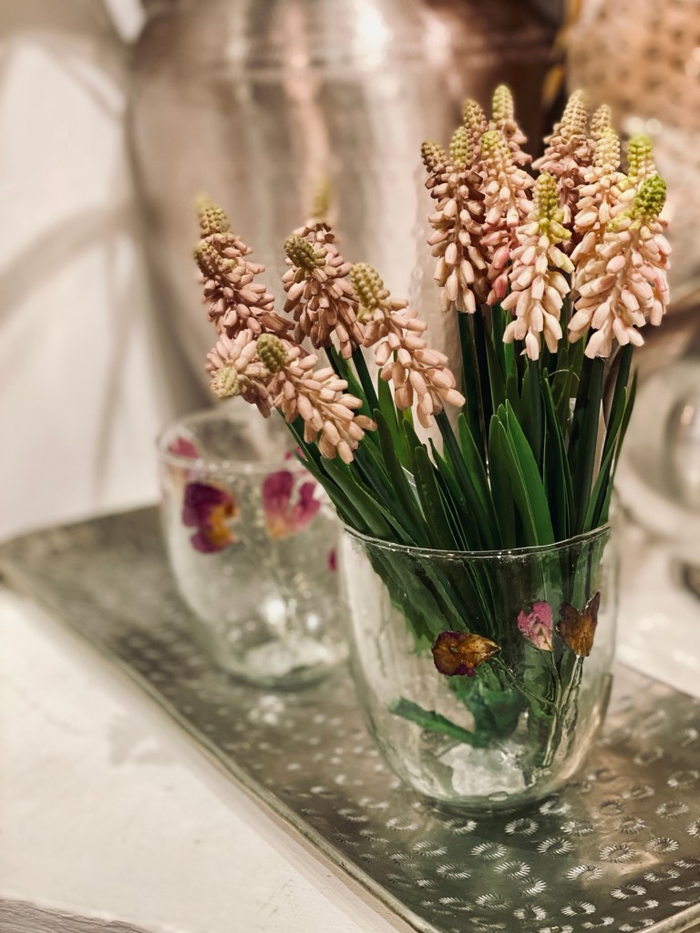 Det handgjorda, enkla och unika gillar jag extra mycket . Spanade in den här ljuslyktan med riktiga torkade blomblad . Fin som vas också.
