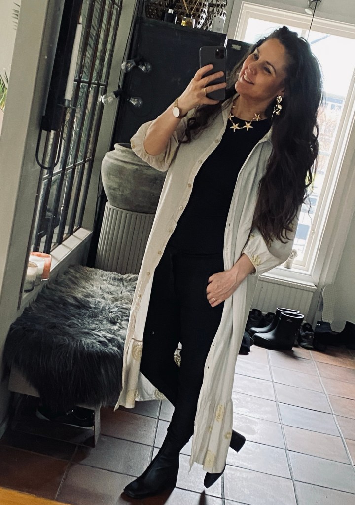 Trivs verkligen att använda skjortklänning öppen över en enkel bralla och top.