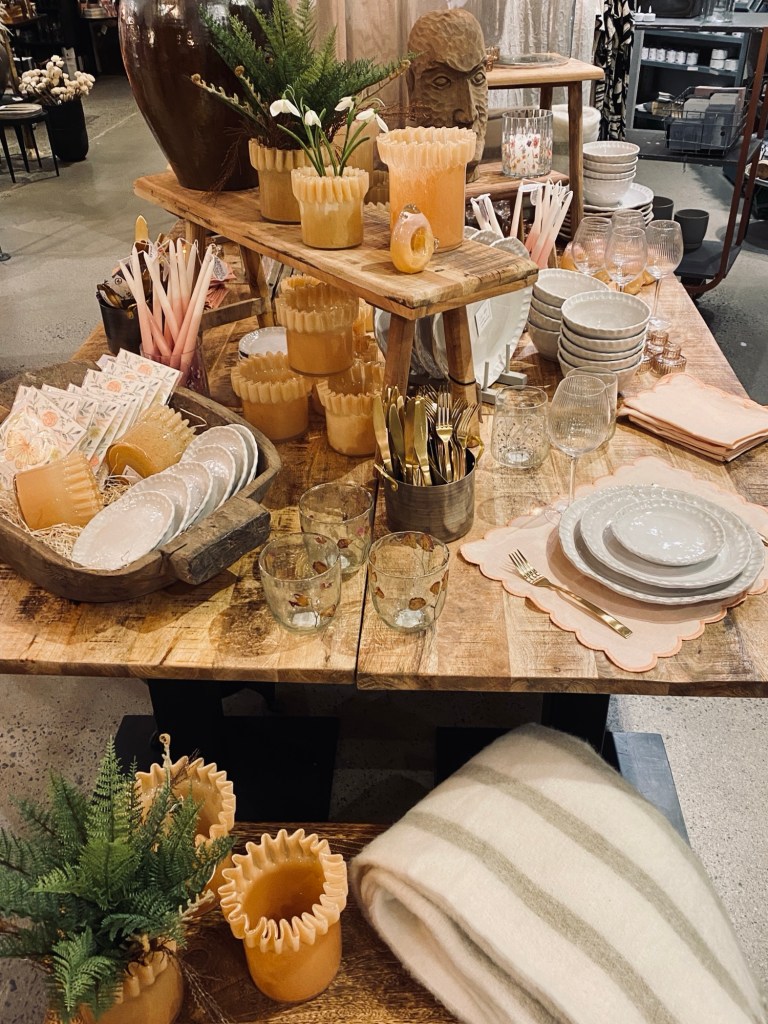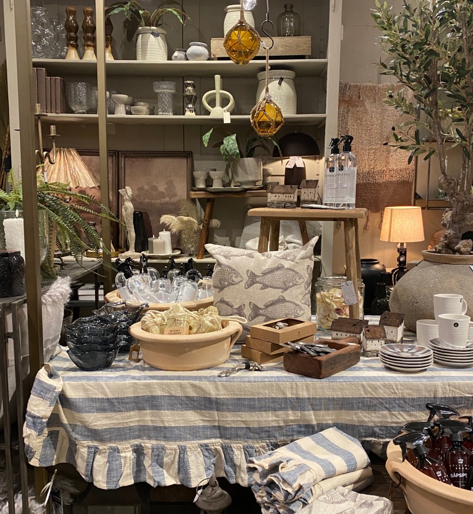 Det stora bordet har dukats upp med glassiga inredningsdetaljer och underbara tallrikar, skålar, glas , tabletter och en massa fler fräscha nyheter.