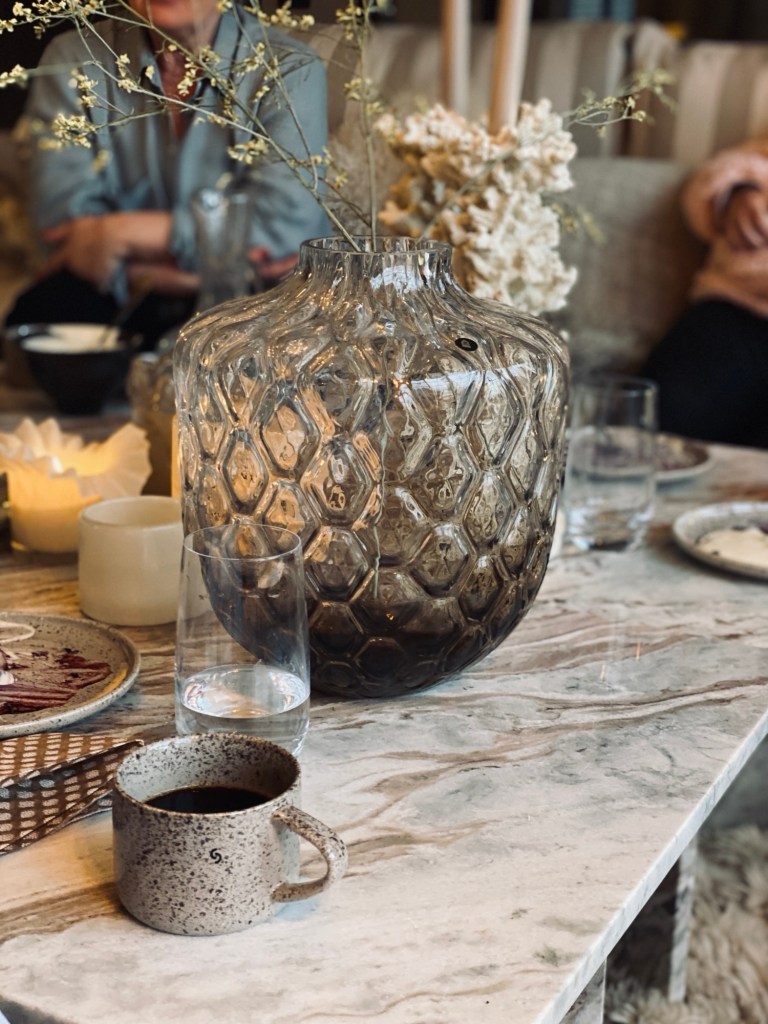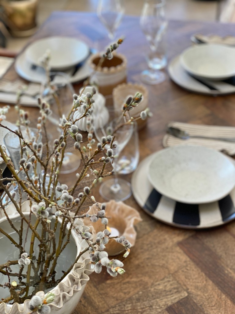 Som vanligt började vi med lite mat. hade dukat upp med en vårig dukning i dova nyanser.
